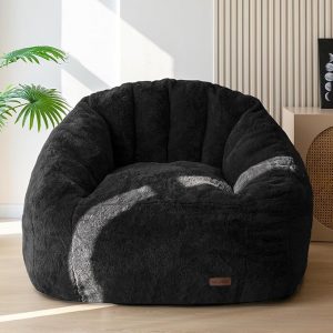 MAXYOYO Giant Bean Bag Chair, Oversized Bean Bag Couch for Adults and Kids, Faux Fur Shell-Shaped Large Chair with Filler, Stuffed Big Accent Sofa Lounge Floor Sofa for Gaming, Reading, Black