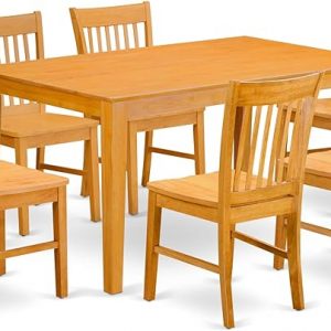 East West Furniture CANO7-OAK-W 7 Piece Dining Table Set Consist of a Rectangle Kitchen Table and 6 Dining Room Chairs, 36×60 Inch, Oak