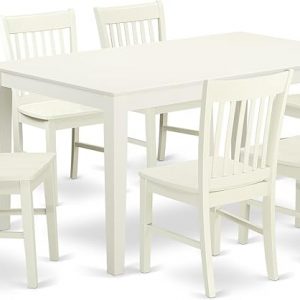 East West Furniture CANO5-OAK-W 5 Piece Kitchen Table Set for 4 Includes a Rectangle Dining Table and 4 Dining Room Chairs, 36×60 Inch, Oak