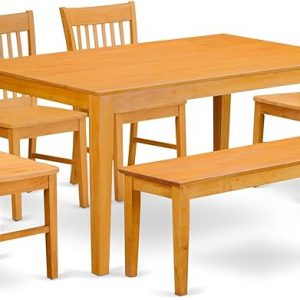 East West Furniture CANO6-OAK-W 6 Piece Dining Room Furniture Set Contains a Rectangle Kitchen Table and 4 Dining Chairs with a Bench, 36×60 Inch, Oak