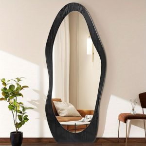 Full Length Mirror Black Irregular Wavy Mirrors 59″ x 24″ Asymmetrical Wall-Mounted Full Body Standing Mirror Wood Frame Mirrors for Cloakroom Bedroom Living Room