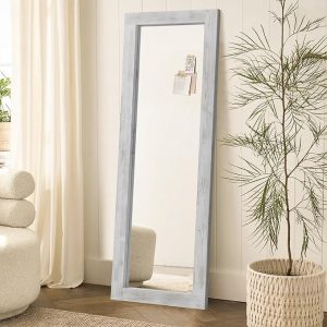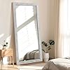 Rustic Farmhouse Full Length Mirror 64″X21″ Wood Frame Floor Mirror with Stand, Free Standing Mirror Leaning or Hanging for Bedroom Living Room, Tempered Glass, White
