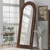 ZHUNFA Arched Full Length Mirror with Solid Wood Frame, 65×22 Farmhouse Wall Mounted Floor Mirror with Stand, Vertical Hanging, Leaning Standing for Bedroom, Living Room, Brown