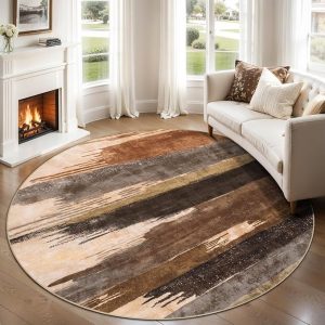 Ciicool 6ft Round Washable Rug, Modern Abstract Circle Rugs, Non-Slip Thin Lightweight Rug Brown Black Circular Print Distressed Carpet for Bedroom Living Room Under Dining Table Home Office Decor