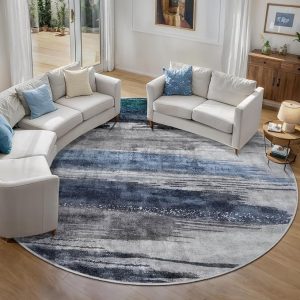 Ciicool Modern Abstract Deep Blue Gray Rug for Living Room, 9’x12′ Machine Washable Area Rug Non-Slip Rug, Low-Pile Contemporary Indoor Dining Floor Carpet for Bedroom Office Under Table Home Decor