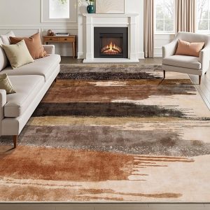 Ciicool Modern Abstract Rug for Living Room, 9’x12′ Machine Washable Area Rug Non-Slip Rug, Low-Pile Contemporary Indoor Dining Floor Carpet for Bedroom Office Under Table Home Decor Brown Black
