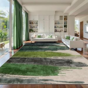 Ciicool Modern Abstract Green Rug for Living Room, 10’x14′ Machine Washable Area Rug Non-Slip Rug, Low-Pile Contemporary Indoor Dining Floor Carpet for Bedroom Office Under Table Home Decor
