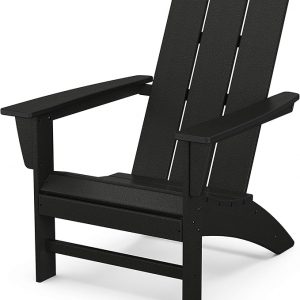 POLYWOOD Modern Adirondack Chair – All-Weather Outdoor Lawn Adirondack Chairs – HDPE, Fade-Resistant & Durable Outdoor Furniture – For Patio, Deck & Fire Pit Chairs – Black