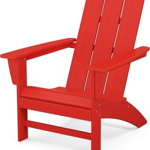 POLYWOOD Modern Adirondack Chair – All-Weather Outdoor Lawn Adirondack Chairs – HDPE, Fade-Resistant & Durable Outdoor Furniture – For Patio, Deck & Fire Pit Chairs – Sunset Red