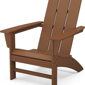 POLYWOOD Modern Adirondack Chair – All-Weather Outdoor Lawn Adirondack Chairs – HDPE, Fade-Resistant & Durable Outdoor Furniture – For Patio, Deck & Fire Pit Chairs – Teak Brown