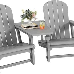 Shintenchi Adirondack Chairs Set of 2,HDPE Adirondack Chairs w/Removable Tablelop & Umbrella Hole,All-Weather Wooden Textured Plastic Outdoor Chairs w/Cup Holders for Garden Backyard Pool,Light Gray