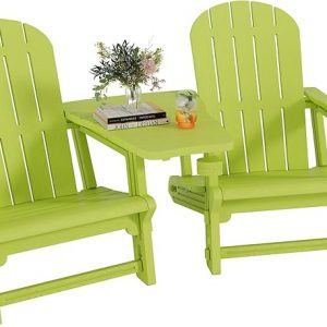 Shintenchi Adirondack Chairs Set of 2,HDPE Adirondack Chairs w/Removable Tablelop & Umbrella Hole,All-Weather Wooden Textured Plastic Outdoor Chairs w/Cup Holders for Garden Backyard Pool,Green