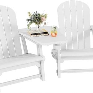 Shintenchi Adirondack Chairs Set of 2,HDPE Adirondack Chairs w/Removable Tablelop & Umbrella Hole,All-Weather Wooden Textured Plastic Outdoor Chairs w/Cup Holders for Garden Backyard Pool,White