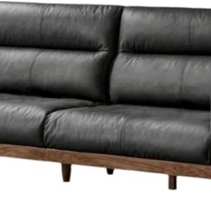 GVAwood Sandalwood, Ash Solid Wood Genuine Leather, Fabric High-Back Sofa 102.4×38.6×39 inch / 260x98x99 cm/Walnut Color/Sandalwood 2.6-Meter Leather Sofa Black