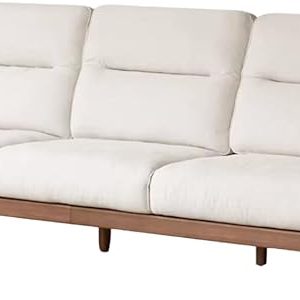 GVAwood Sandalwood, Ash Solid Wood Genuine Leather, Fabric High-Back Sofa 116.3×38.6×39 inch / 295.4x98x99 cm/Walnut Color/Sandalwood Sofa (Imitation Cotton and Linen Off-White) 2.95m