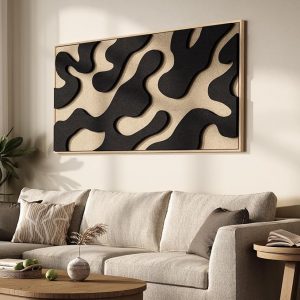 Large 3D Textured Framed Neutral Abstract Wall Art for Living Room, Oversized Modern Minimalist Horizontal Artwork for Walls, Black and Beige Abstract Paintings for Bedroom Hallway Office Wall Decor Visit the Cuspin Store