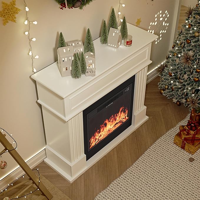 - Inviting Electric Fireplace Ambiance: Built with detailed artificial logs, this electric fireplace instantly brings a snug and welcoming glow to any living space. The classic mantel provides both stylish decoration and functional storage—ideal for showcasing your favorite items while featuring a remarkably realistic flame effect that delivers timeless comfort and charm