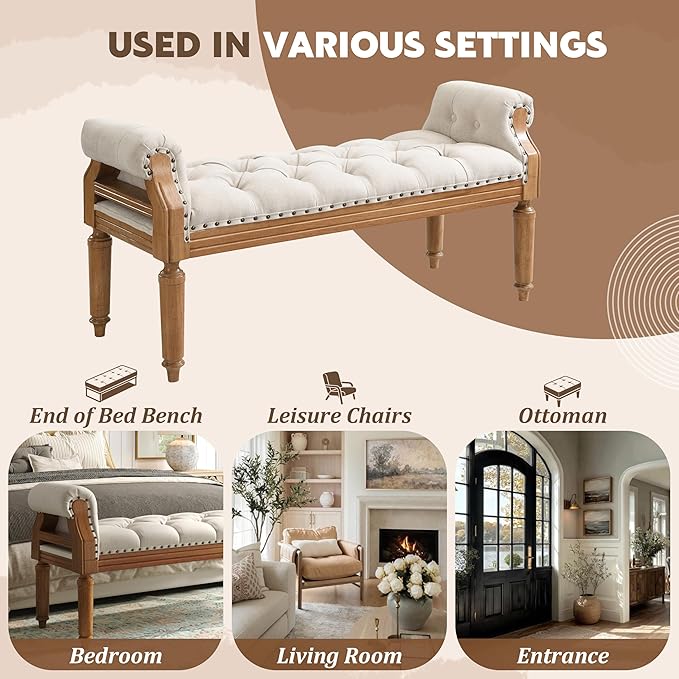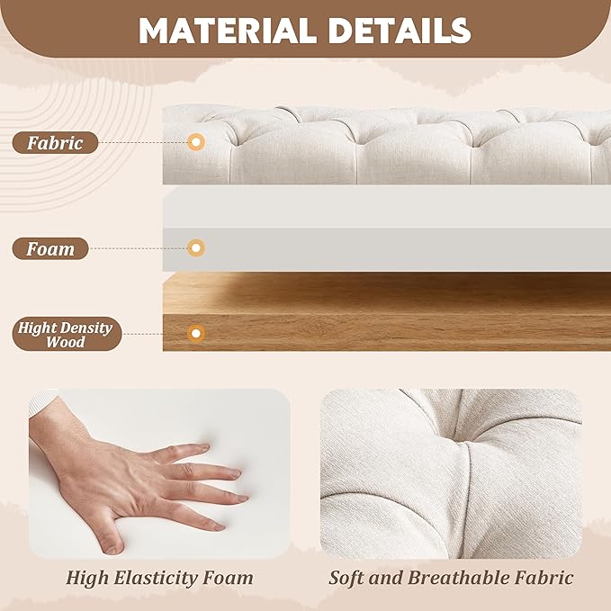 • Multi-functional Use: This bench suits a wide range of home settings, from bedroom footboards to entryways, reading corners, or vanity seating. Its spacious surface offers convenient support for dressing, relaxing, or placing bags and accessories. Easily incorporated into various interior styles, it enhances both practicality and decorative balance