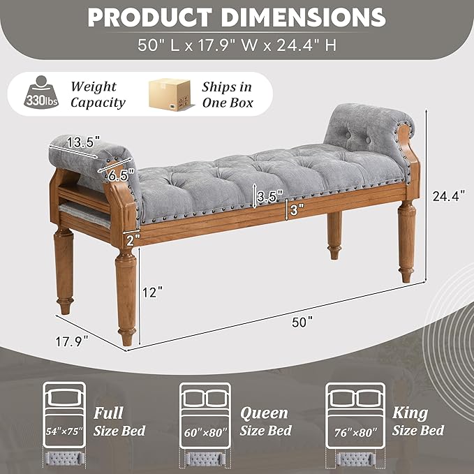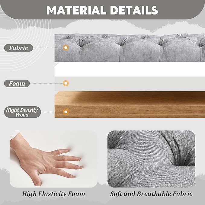 • Multi-functional Use: This bench suits a wide range of home settings, from bedroom footboards to entryways, reading corners, or vanity seating. Its spacious surface offers convenient support for dressing, relaxing, or placing bags and accessories. Easily incorporated into various interior styles, it enhances both practicality and decorative balance