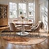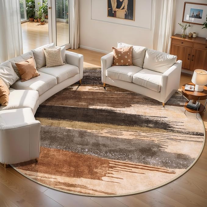 • Machine Washable Easy Clean Rug: Our machine washable abstract rug non slip can be conveniently machine washed, vacuumed, or cleaned with a broom or cloth, or for deep cleaning, put it in the washing machine and wash it separately in cold water. Vacuuming tips: Place anti-slip rug pads or double-sided carpet tape under the rug to keep it in place, if your vacuum has adjustable suction, use the lowest setting. The circular rug is normal for the rug to have wrinkles from packaging, and we recommend rolling it in the opposite direction to allow time for the wrinkles to flatten and settle.
