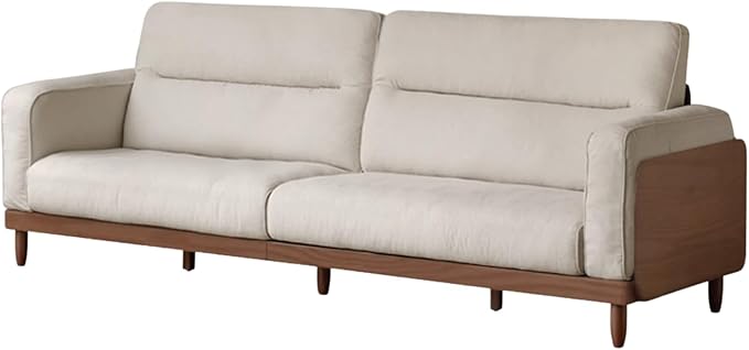 GVAwood Sandalwood, Ash Solid Wood Genuine Leather, Fabric High-Back Sofa 102.4×38.6×39 inch / 260x98x99 cm/Walnut Color/ash Sofa (Imitation Cotton and Linen Linen Color) 2.6m