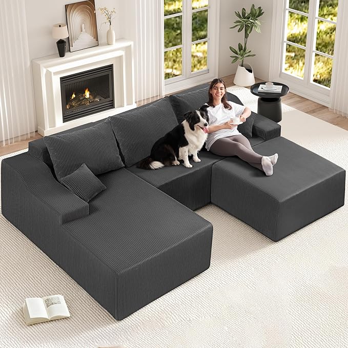 - Comfortable Sofa Set: With spacious seating, this 94″ cloud-like sectional sofa lets you stretch out and relax alone or with guests. Filled with high-resilience foam, it contours to your body for lasting comfort and superior support.