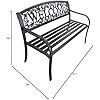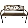- The bench frame is constructed of steel tubing, with a cast aluminum back and a durable powder coated paint finish for indoor or outdoor use