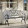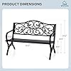 MFSTUDIO 50 Inches Outdoor Garden Bench, Cast Iron Metal Frame Patio Park Bench with Floral Pattern Backrest, Arch Legs for Porch Lawn Garden Yard(Black)
