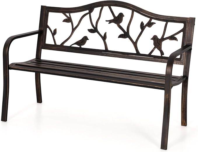 - 【Unique Bird Pattern】Elegant designed with the pastoral bird decoration on the backrest, add a sense of decoration to your patio, garden, lawn, backyard and more. Bronze color make the bench has the retro design style