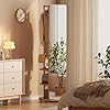 Muwuele Solid Wood Full Length Mirror Coat Rack, 70″ x 20″ Oversize Standing Mirror Full Length with Brake Wheels, Floor Mirror for Living Room, Entryway (Natural)