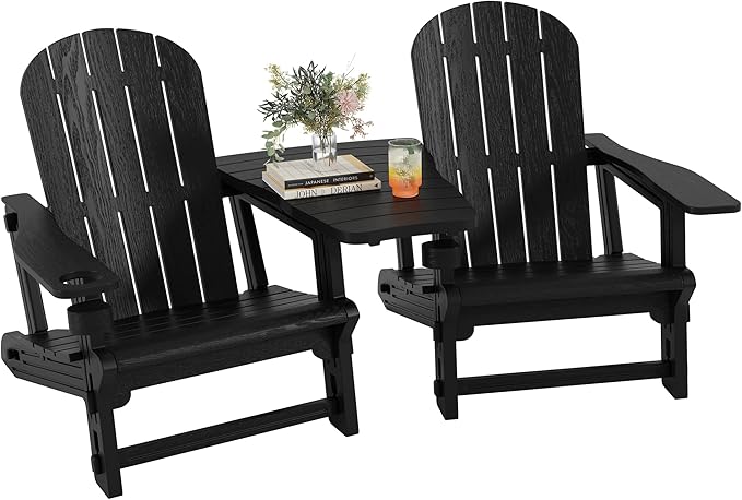 - Easy Assembly: Our Adirondack chairs feature a snap-on design, requiring no screws or drilling for easy assembly. Simply follow the instructions for a smooth installation. The robust and durable engineering allows it to support up to 360 lbs, making it a reliable outdoor lounge chair.Note: The package contains 2 chairs and 1 connecting tray.