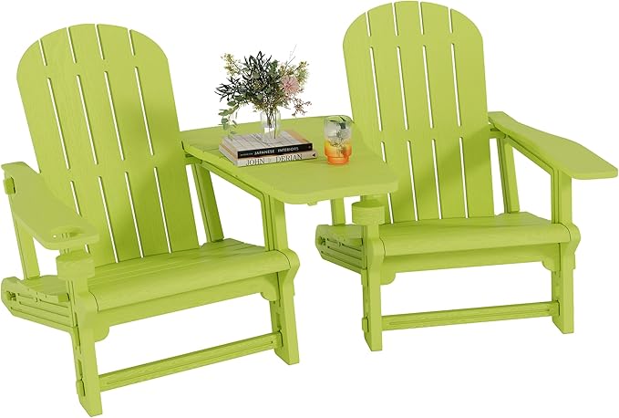 - HDPE Material: Our Adirondack chair is made from premium recycled high-density polyethylene (HDPE) plastic, which is colorfast, waterproof, and corrosion-resistant, ensuring sustainability. This chair set also features a wood-look design that blends perfectly into various outdoor environments, such as patios, gardens, balconies, and poolside areas, adding a touch of sophistication to your home.