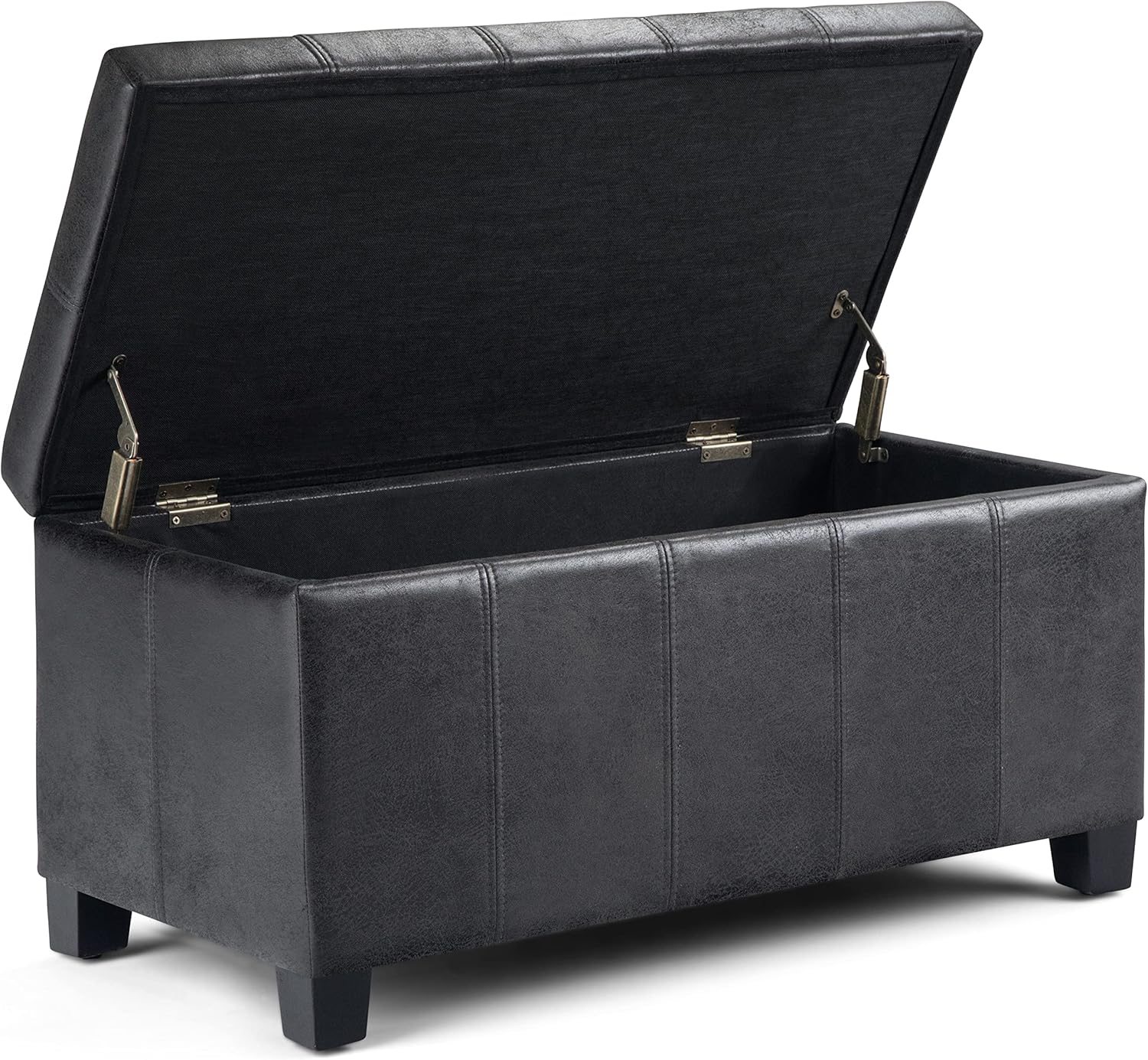 - COMPACT SIZE: Measuring 17.9″D x 35.6″W x 18.1″H, this space-saving ottoman offers ample storage and seating while fitting comfortably in living rooms, bedrooms, or entryways.