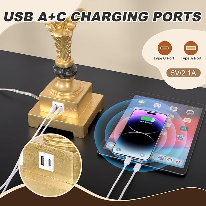 - Built-in USB Ports: With USB A+C charging ports, This rustic nightstand lamp features USB A+C charging ports, making it easy to charge your electronic devices right at your bedside. The charging port works even when the light is off for added convenience.