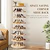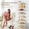 - SPACE SAVING CORNER SHOE RACK: The floor standing 7 tier structure is well utilized the vertical space, and the 360 degree rotatable ability allows for clever use of floor space. No matter you have a narrow closet, a compact entryway, or a corner in your bedroom, this spinning shoe rack tower can keep all your items well organized and easily visible. Say goodbye to cluttered floors and messy closets! Display your collection with pride, while freeing up more room for other essentials.
