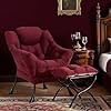Tiita Lazy Chair with Ottoman, Red Modern Large Accent Chair, Comfy Leisure Sofa Armchair with Ottoman, Reading Chair with Footrest for Bedroom, Living Room, Dorm Rooms, Wine red