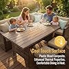 - 【Practical Table with Plastic Wood Top】This Patio table features a wood-plastic composite surface that maintains a comfortable temperature—staying cool in summer and warm in winter—ensuring an ideal outdoor dining experience year-round. The tabletop is also waterproof, corrosion-resistant, and built for long-lasting durability.