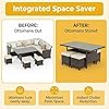- 【Convenient Storage Solution】This patio conversation sets includes three footstools that can double as extra seating when needed. The spacious under-table area provides organized storage for footstools and cushions, keeping your patio tidy and clutter-free when not in use.